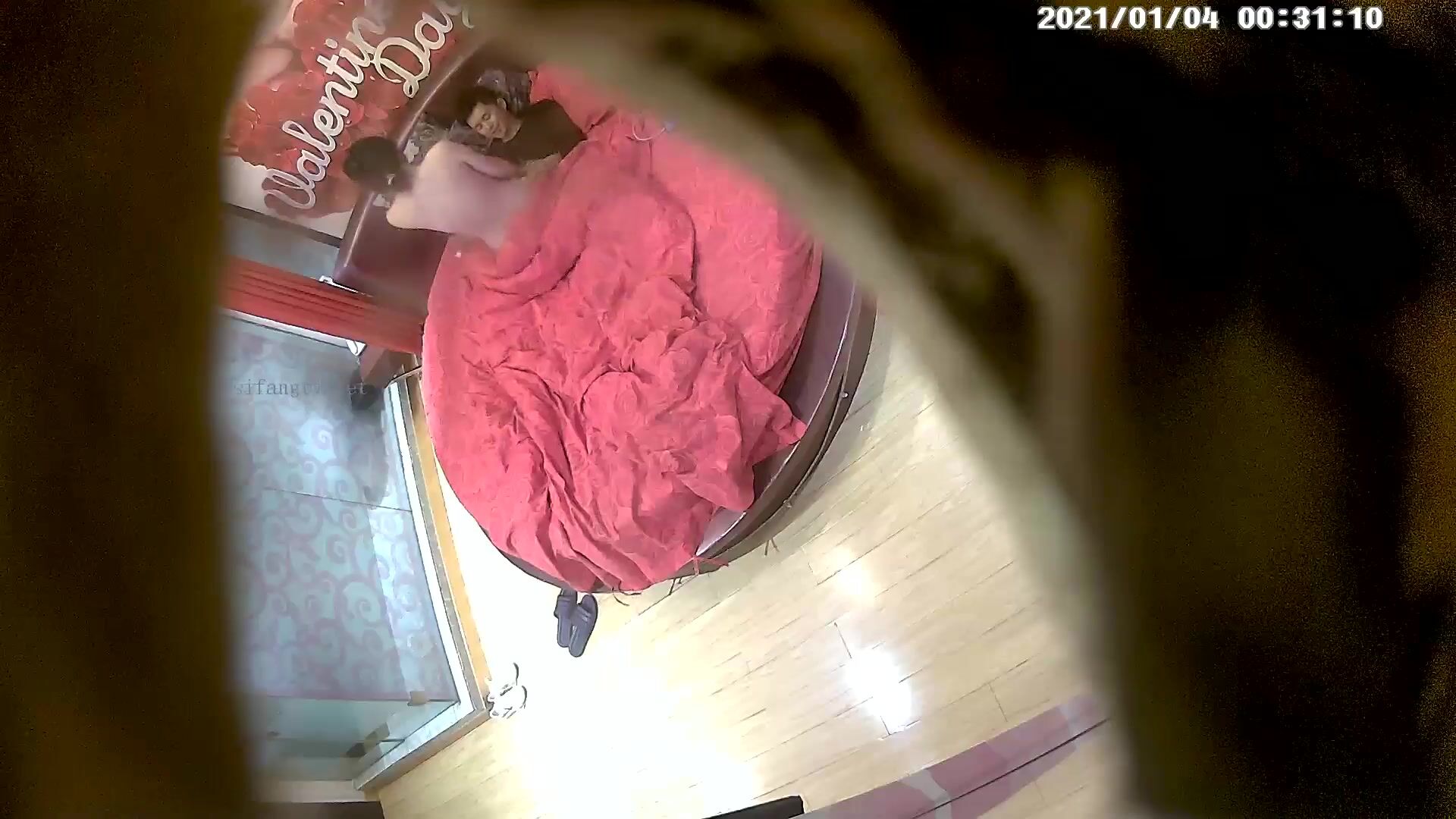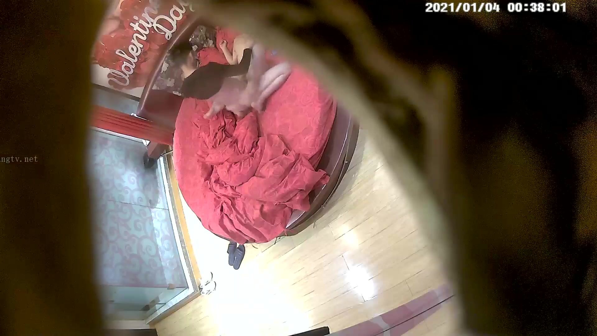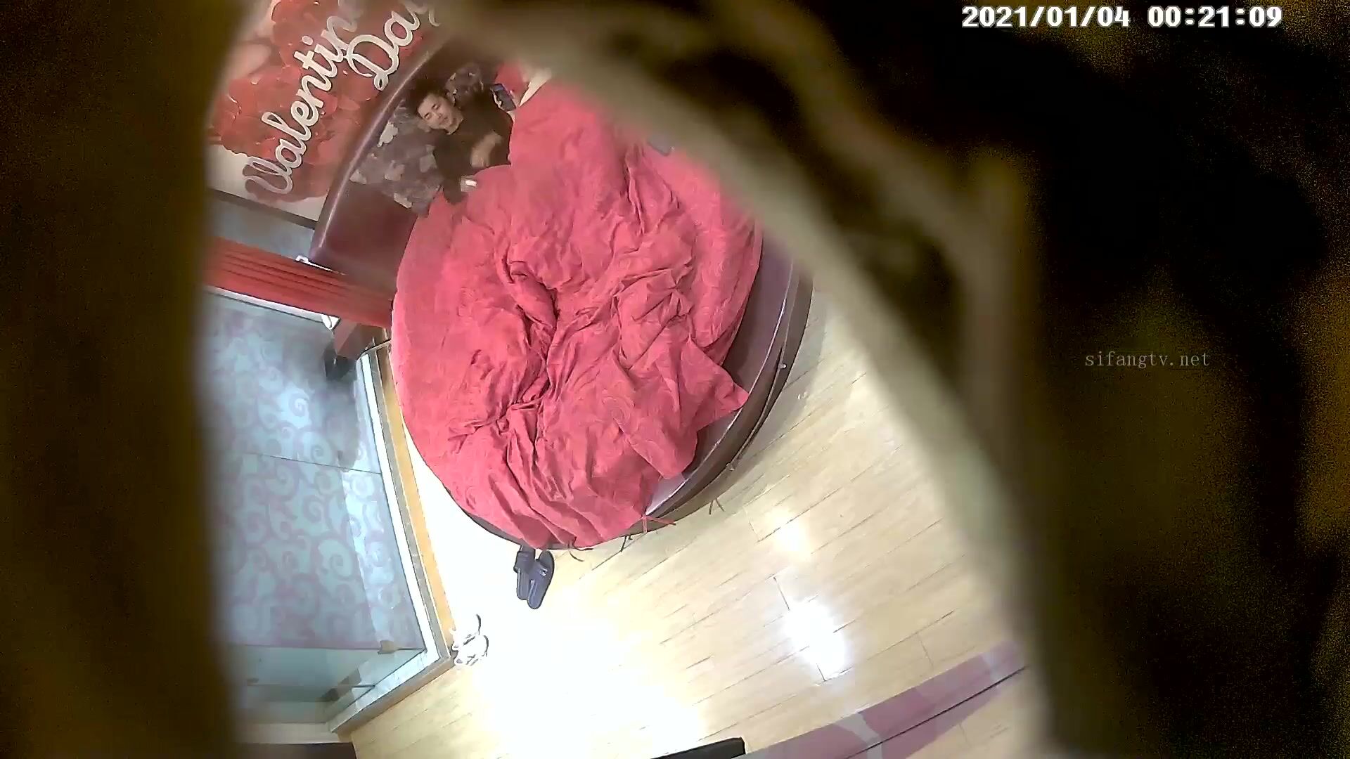 情趣酒店喜庆红色大圆床偷拍气质美少妇和情夫偷情被内射逼里