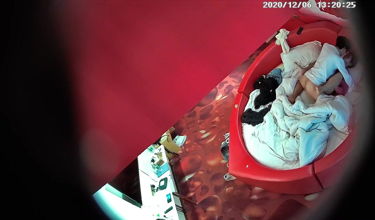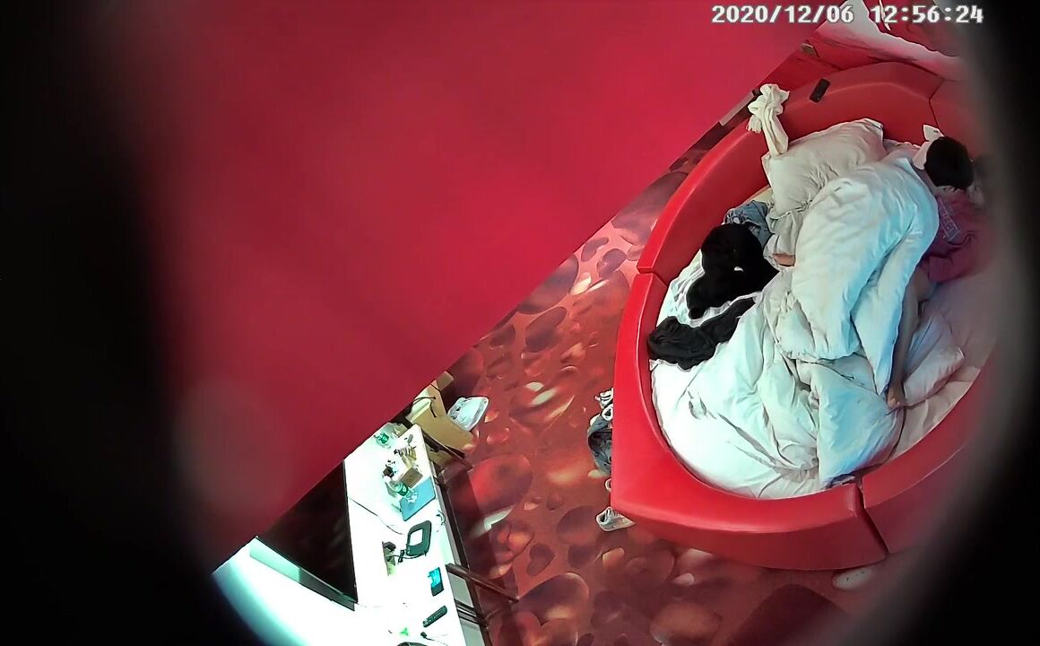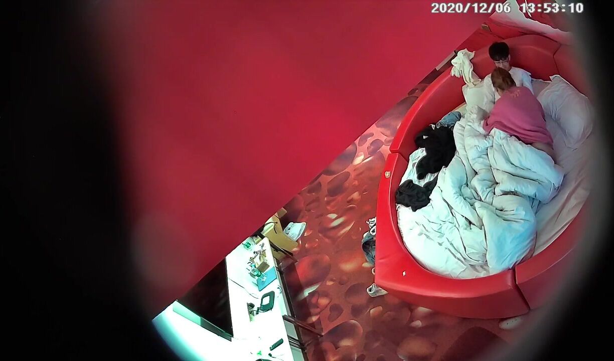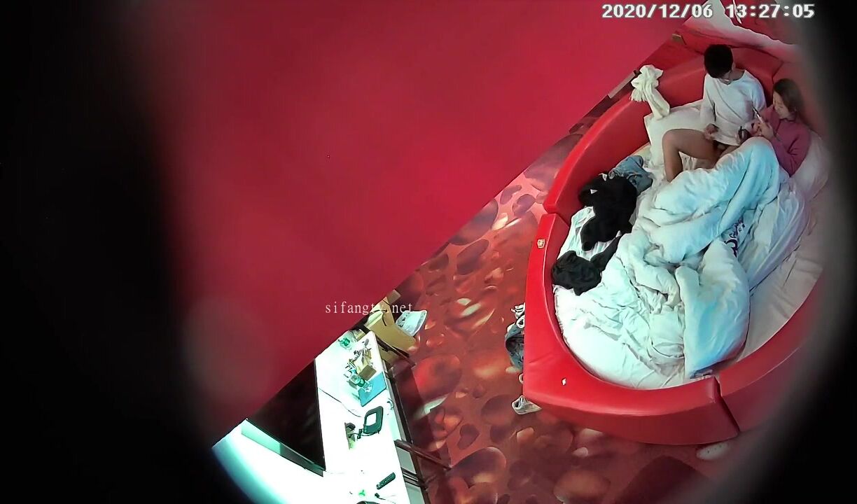 【麻花免费视频】高校附近主题酒店红色情趣大圆床偷拍下午没课眼镜同学和女友开房干完掰穴闻闻逼的味道