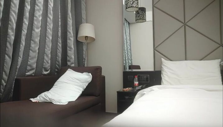 情趣酒店镭射光影房360摄像头偷拍老哥吃完宵夜和朋友媳妇开房偷情